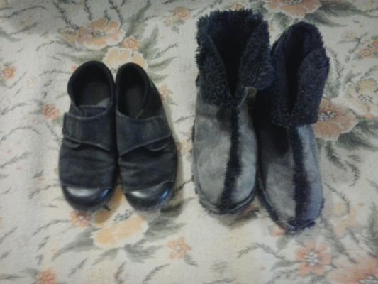 и домашние теплые "валенки" - шила сама из старой дубленки, снизу кожа. Сын носил дома зимой. Там надо немного подшить, а так отлично - то же где-то на 27-29 размер.