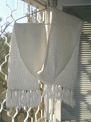 Отдам белый шарф. размер 190х20 см + 10 см бахрома.