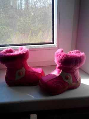5) Детские зимние сапожки 21 р-р, по стельке 12,5 см., но на узкую ножку, от того, что полежали потерлась краска, на фото видно