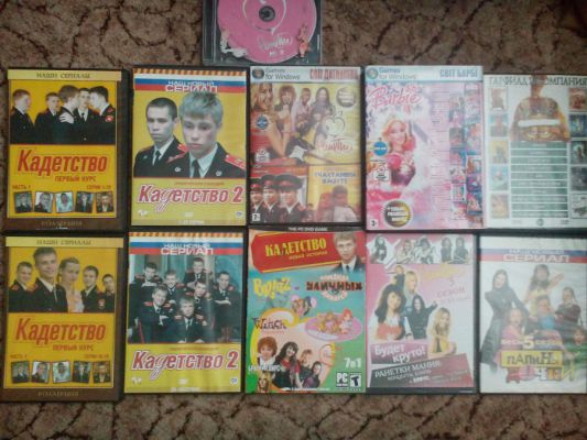 Отдам диски с играми Світ Барбі - 2 шт, ранетки, кадетство, и диски с фильмами Ранетки, Кадетство, Папины дочки, мультфильмы. Может кому надо -