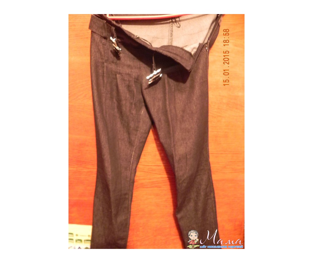 Брюки для беременных, на размер 46-48. Можно носить до объёма бёдер 110-114 см. На рост до 164 см. т.к. укорачивала под себя. Немного протерлись между ног. Подойдут на весну.