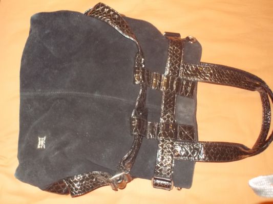 Сумка черная. Лицевая сторона замшевая. В реальности замш не такой затертый как на фото. Потерлись уголки - на фото видно. Забирать на Намыве. Писать в лс