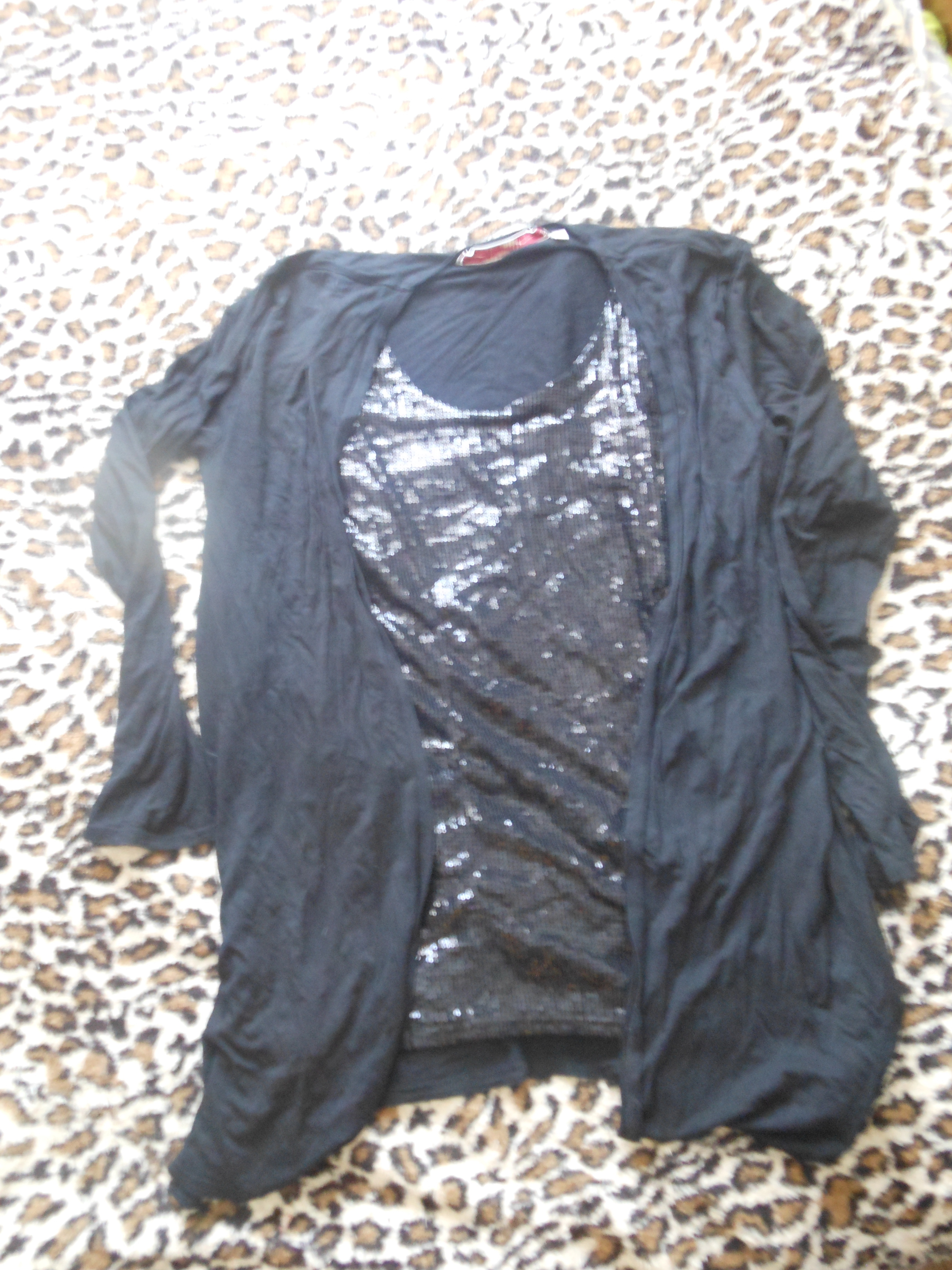 Отдам женскую блузку с паетками большого размера примерно 54. есть места где выпали паетки так же есть зацепки. также отдаю брюки женские с карманами 54 размер.