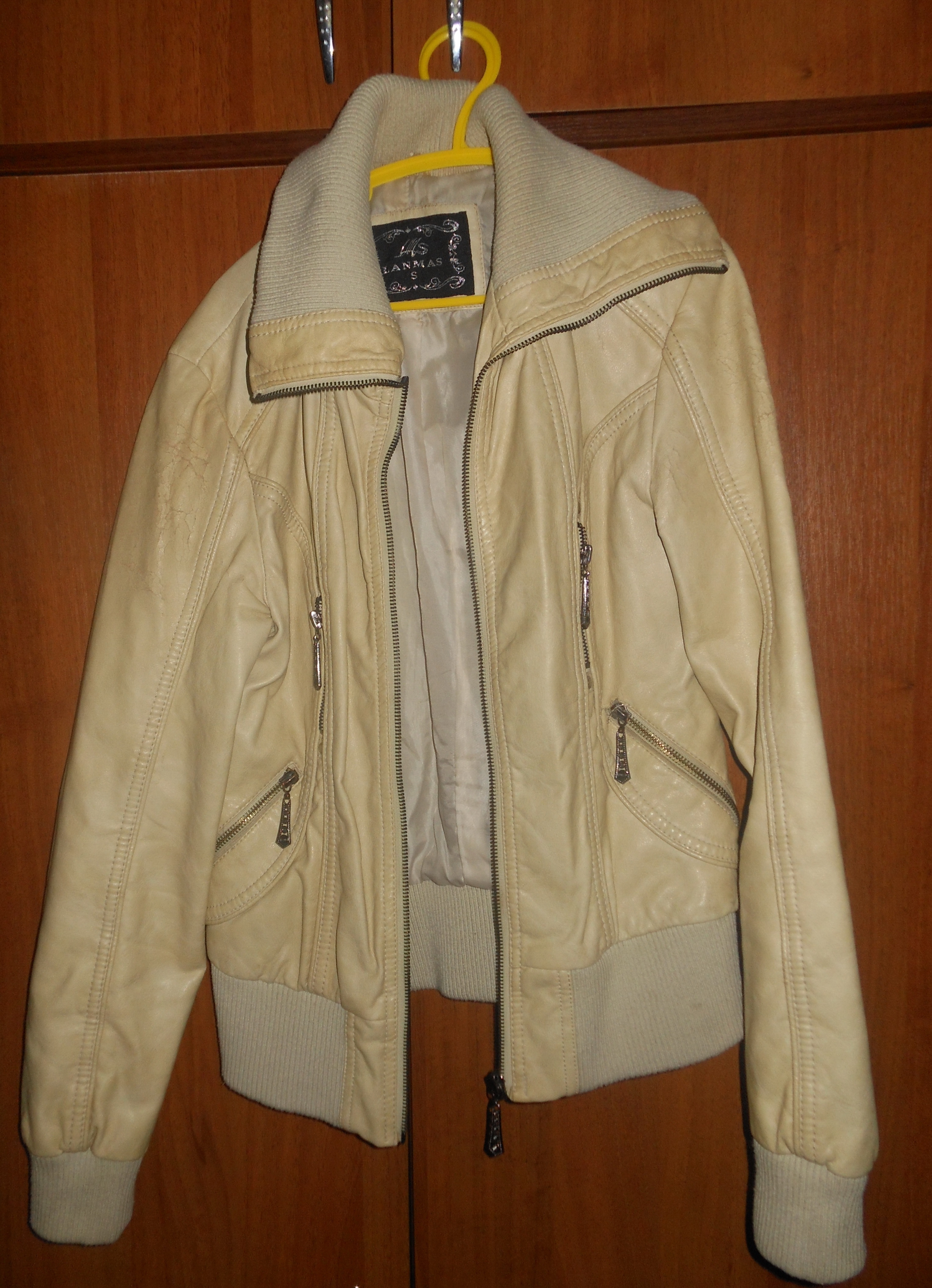 отдам куртку кожзам, размер S. Потрескалась на плечах...