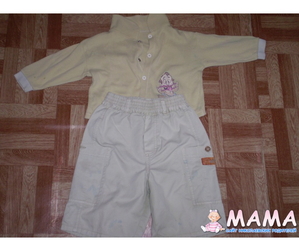 штаники и кофточка примерно на 9 месяцев (если нужны точные замеры-сделаю).