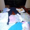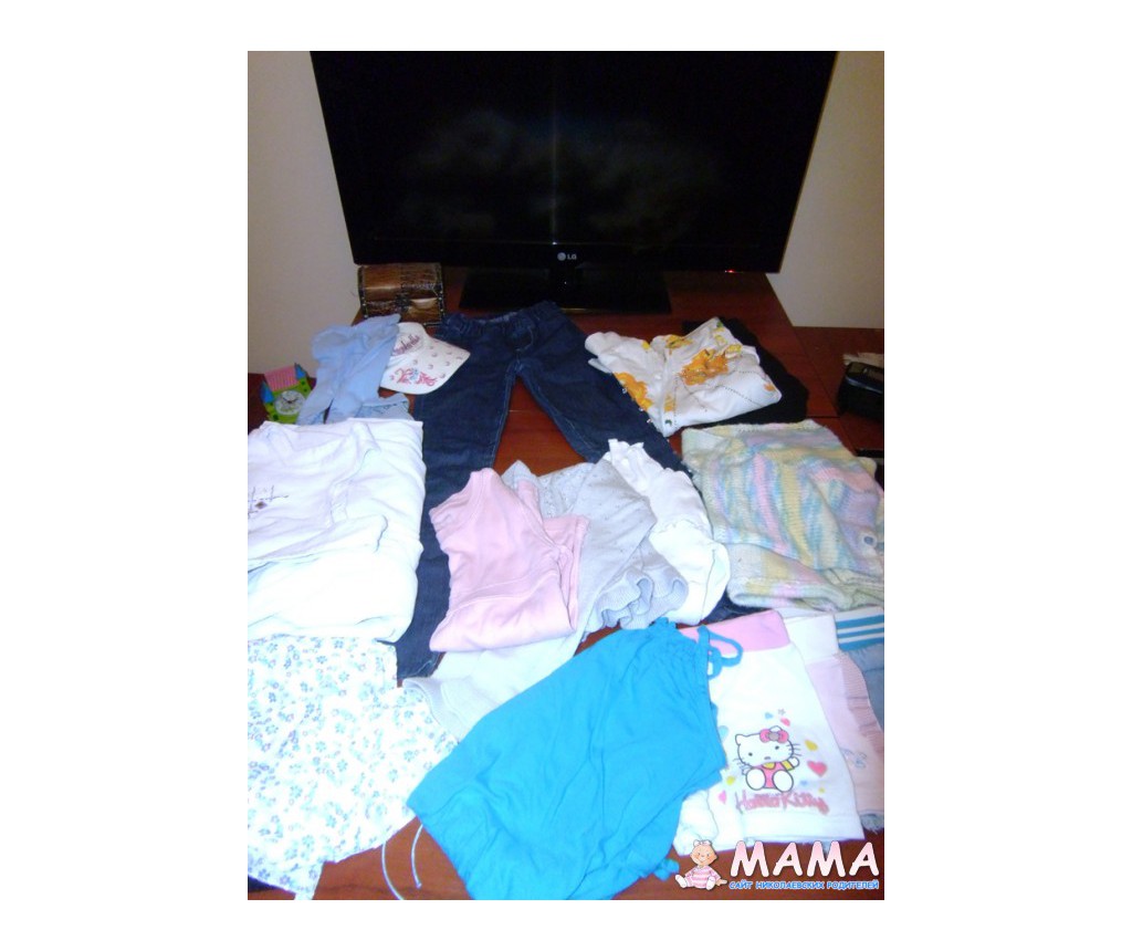 Є джинси, пару кофтин, пару регланів, футболки, шортики, ромпер, плаття.