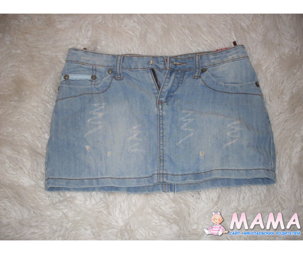 отдам юбочку джинсовую, размер 42.Недостаток- нет пуговки, видно на фото