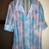 Блузка розово-голубая, тонкая, дышащая, приталенный крой, по бокам разрезики.