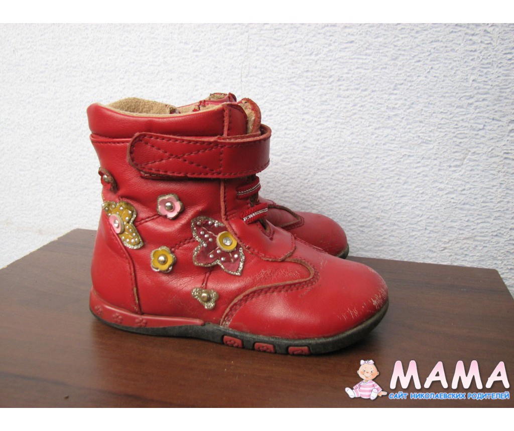 ботиночки деми для девочки, 16см стелька, б/у, видно на фото: не все цветочки есть и поцарапаны носочки, а так все целое и рабочее, меняю на киндер-сюрприз:)