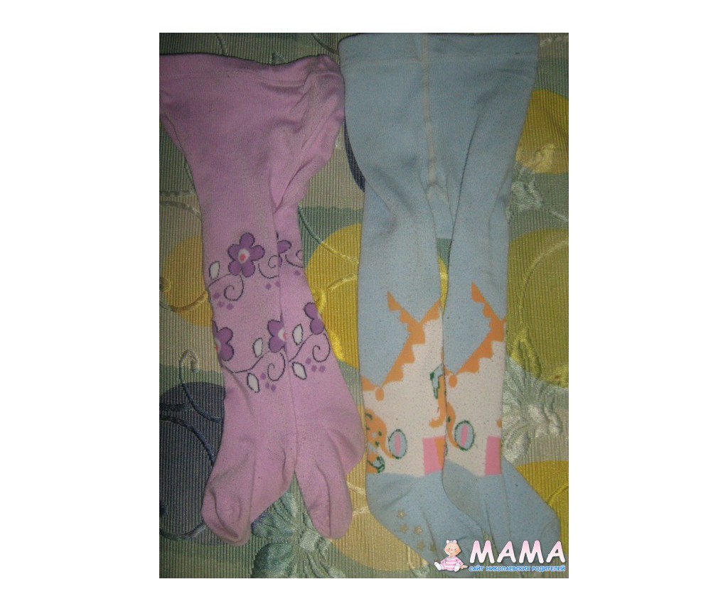 Колготки на 1-2 года : голубые из дорогих с нескользящей подошвой теплые, сиреневые одеты 2 раза, не утеплены. Двое колгот за 1 кг. мандарин.
