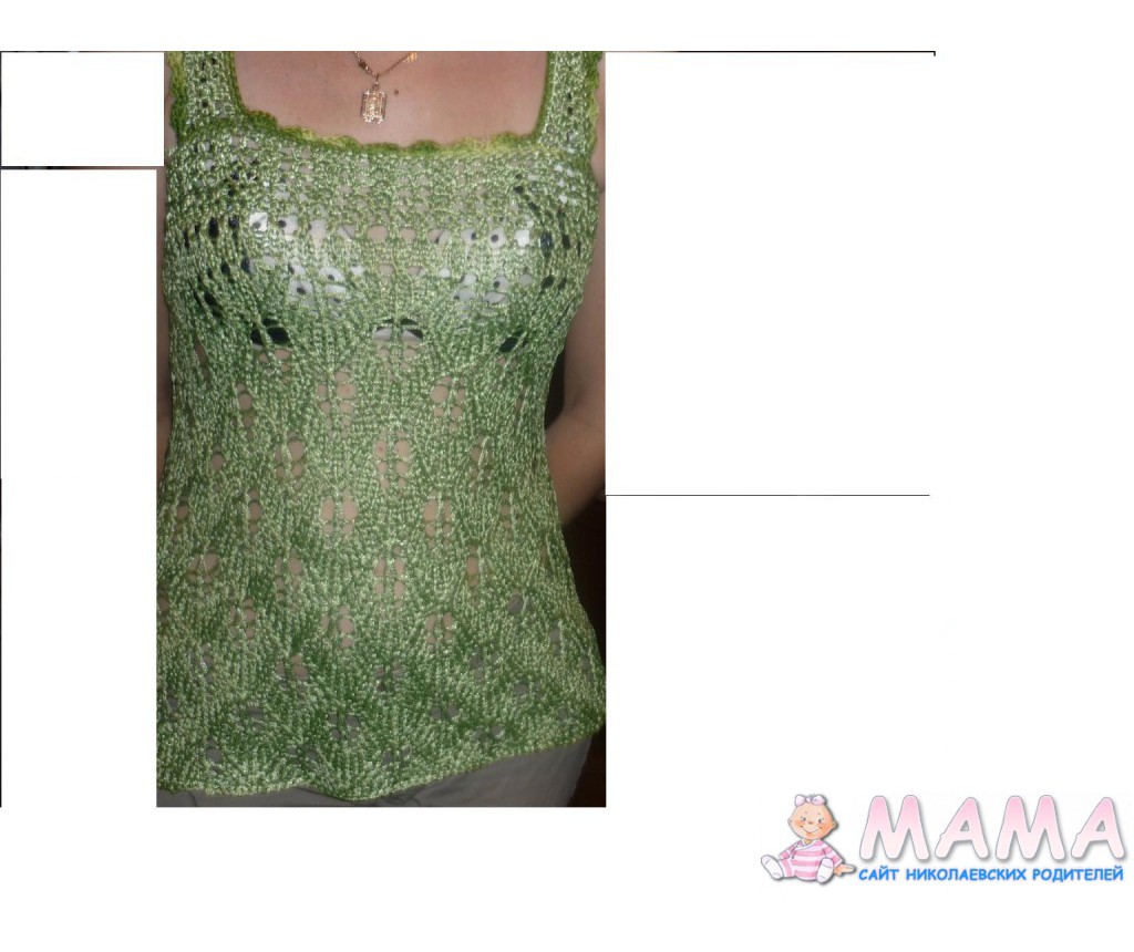 06 July 2011 Цитата: #6785 Vitalinka 06 July 2011, 12:04Ну вот еще. Фото обрезала, бо бардак дома, так что сори)) Майка вискоза, красивая)) делала для пуза, но одела только раз, потом не влез, сильно долго вязала(((
