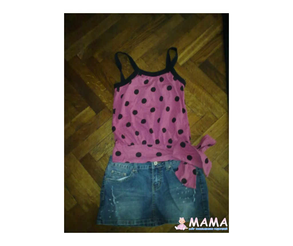 джинс.юбку(об-96 ) и розовый топик на 1 киндер для девочек или растишку с печеньком