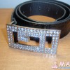 Приветик. Застегивается внутрь. =)) На мне сходится - у меня 48 р-р одежды.....по бедрам примерно 100см +/- 15см (дырки в ремне) Завтра напишу в личку длину, сейчас малая уже спит. Вот в инете нашла фотку: (пряжка в дырку, ничего не торчит и отлично держит.)