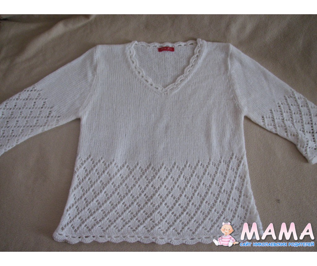 Блузка трикотажная с гипюровыми рукавчиками и декольте, сзади на шее змейка. р.50-52