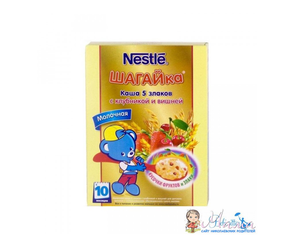 Nestle шагайка 5 злаков с клубникой и вишней с 10 мес. (экв.30-32грн.)