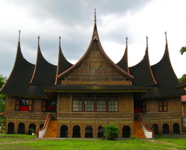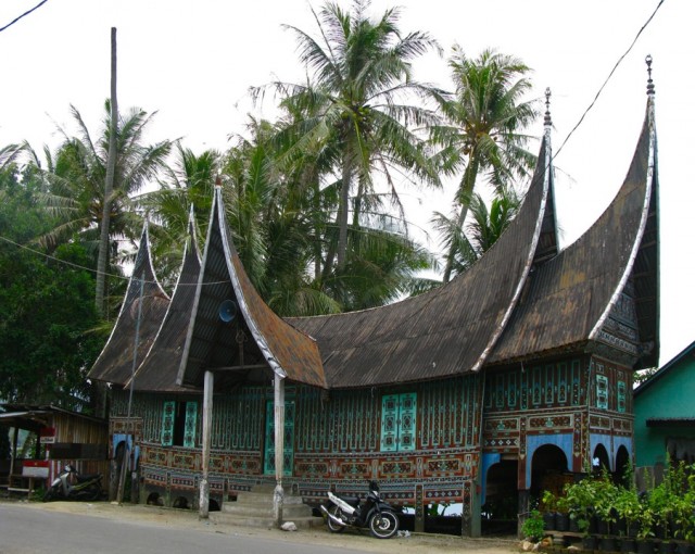 Это только с первого взгляда кажется, что дома минангкабау похожи на дома батаков. На самом деле, они – совершенно другие. Крыша традиционного дома минангкабау с двух сторон высоко загнута вертикально вверх, а искусная резьба и разноцветная яркая роспись по дереву делают его настоящим произведением искусства.