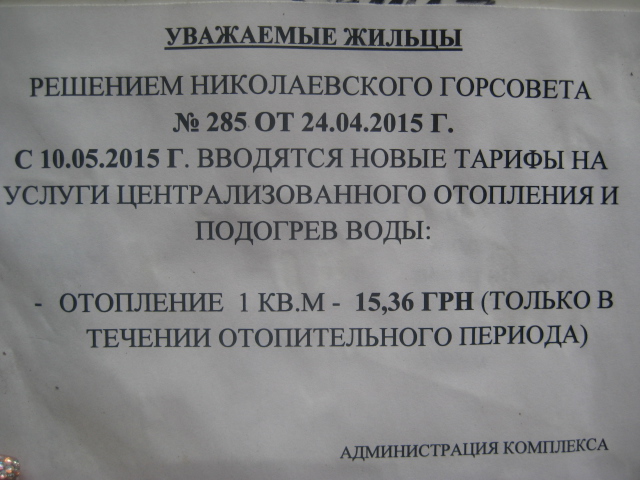 У нас по отоплению висит вот такое объявление на доме.Счётчика в доме нет.Посчитала сколько буду платить за "трёшку" и ужаснулась.