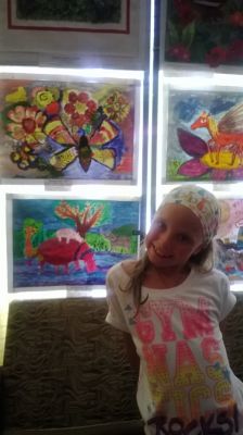 Очень неожиданная победа, мы реально ехали "потусить" на фестиваль, а ребенок вот так умудрился нас удивить. У нее действительно получилась очень красивая работа. Я когда проходила мимо рисующих детей увидела эту работу, не узнала в фартуке своего ребенка и подумала "ВАУ!!! Вот это повезло какой-то маме, как ребенок красиво рисует!!!", каков же был шок, когда на мой вопрос "где мой ребенок?", мне показали на Соню с этим рисунком