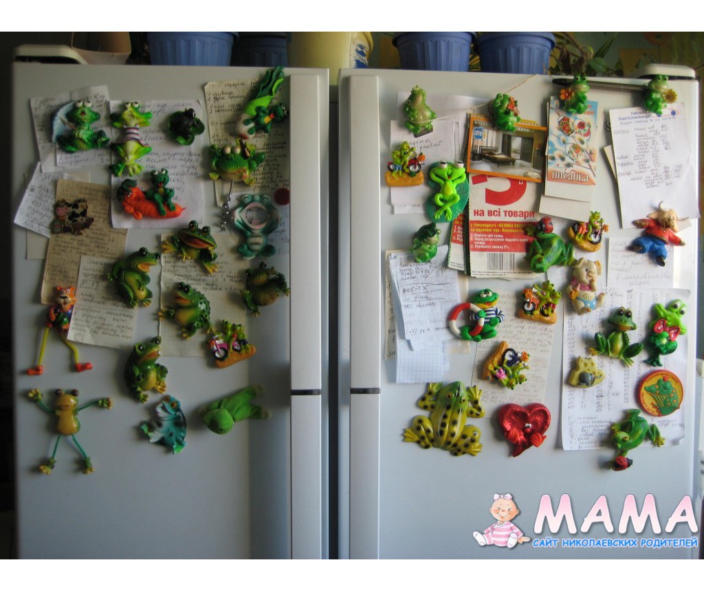 У меня на холодильнике куча записок всяких и конечно-же ЖАБКИ, на нем засела небольшая часть моей коллекции.