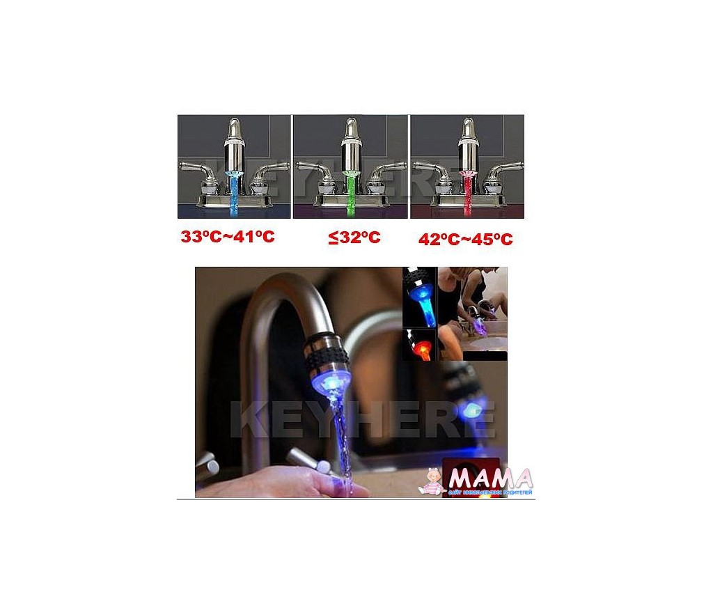 Разноцветная подсветка воды для крана с 3 меняющимися цветами Aqua Show