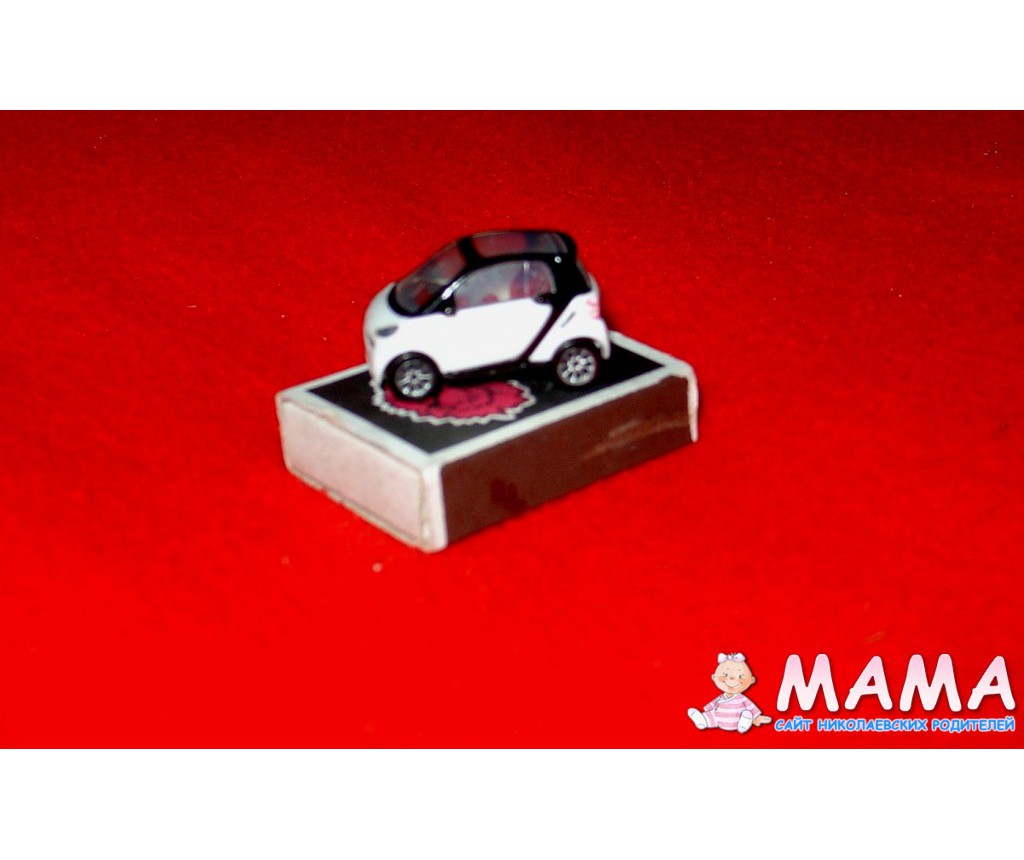 Колеса крутятся, все детали хорошо различимые, фары по 2мм из прозрачного пластика, руль, сиденья - все как у взрослых На днище написано "fortwo coupe. licensed by smart gmbh. mpg tt089"
