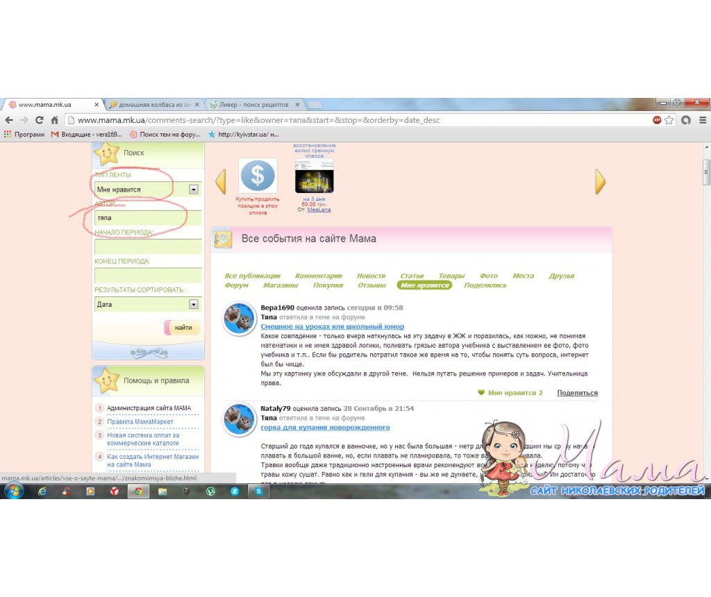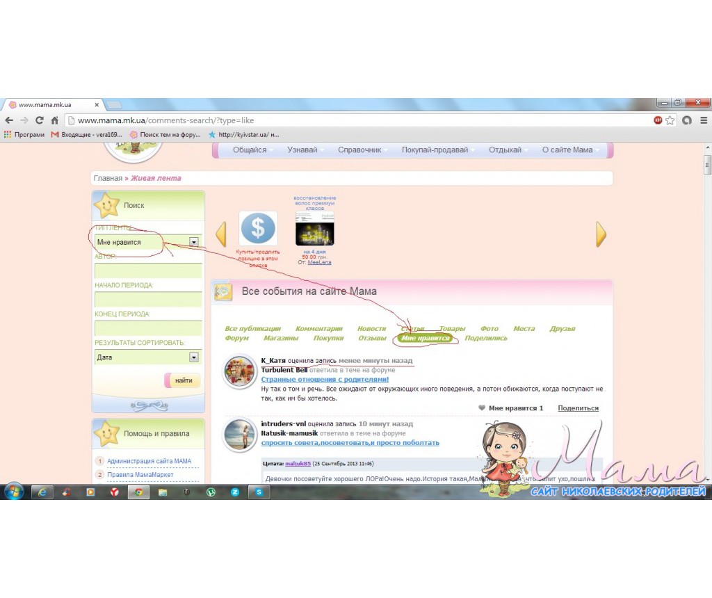 зліва, у формі сотування обираємо тип "мне нравиться", або можна це зробити у шапці стрічки, там зелені активні кнопки