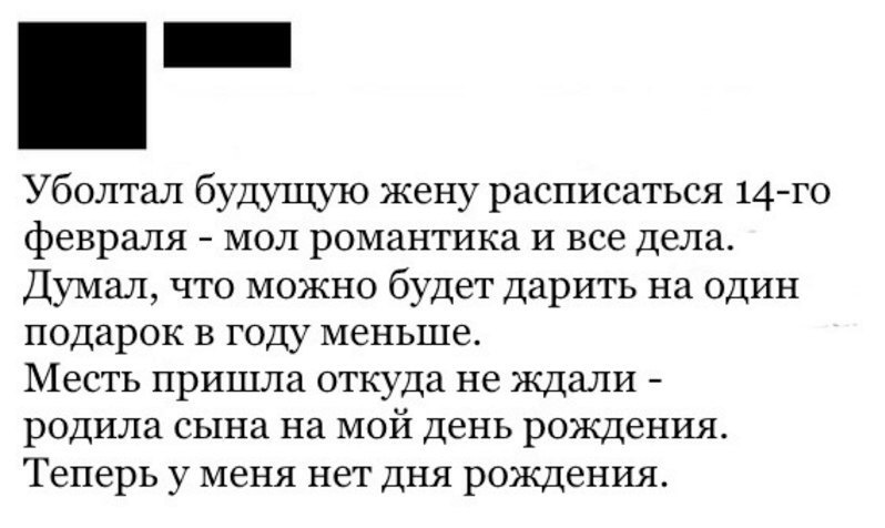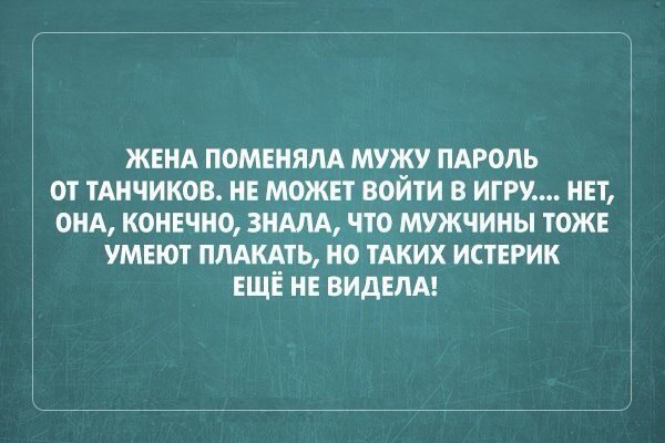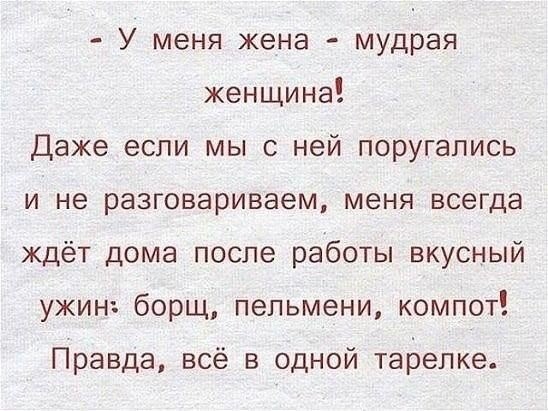 — Жена на что-то надулась и не разговаривает со мной. Наивная, у меня это третий брак, я чемпион по молчанке, могу спокойно молчать все два дня.