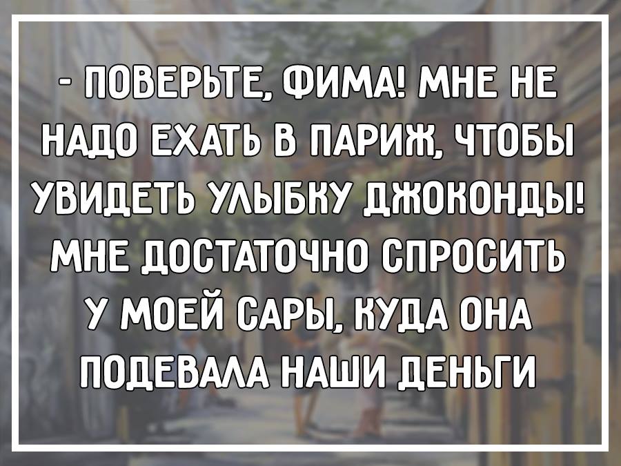 — Яша! Я вас умоляю! Снять квартиру там можно только на фотоаппарат!