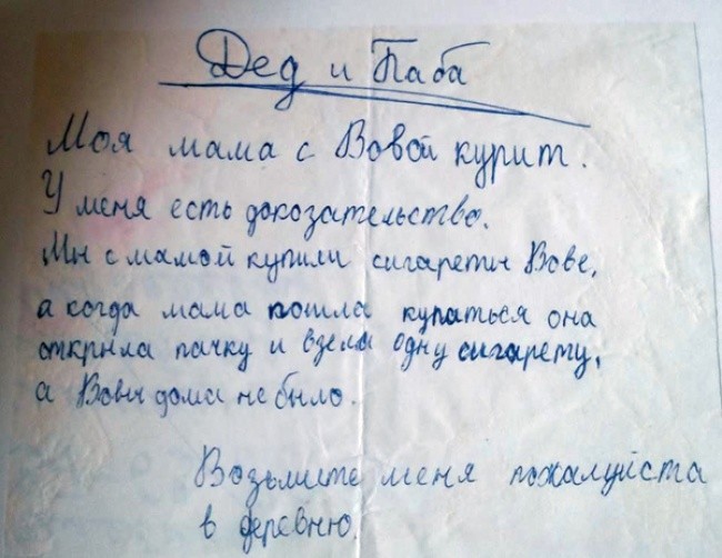 Смешнее и серьёзнее детских рисунков могут быть только детские записочки и письма. Оставленные на столе, приколотые к холодильнику или затесавшиеся между упражнением по "русскому" и домашкой по математике - они напоминают о том, что все наши взрослые заботы - полная чушь. А вот проблемы детей важны и требуют немедленного решения.