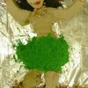 Оставшуюся крошку смешайте с небольшим количеством зеленого красителя, хорошо перемешайте, чтобы крошки немного окрасились и ровным слоем посыпьте торт.