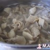 На топлёном жиру (свиной, птичий или любой другой животный жир без сильного запаха) тушим яблоки. Когда они стали мягкими - добавляем чеснок и перемешиваем. Ещё чуть-чуть тушим и готово.