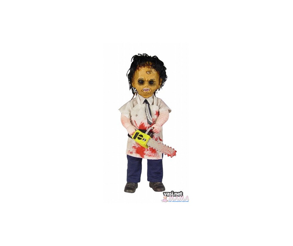 Фильм «Техасская резня бензопилой», назван самым страшным фильмом в истории кино. Страшнее первых 50 минут «Техасской резни бензопилой» могут быть только финальные 30 минут фильма. А игрушка Гуннар Хансен - человек с кожаным лицом – получилась милой. Если соседские дети будут выгонять вашего ребенка из общей песочницы, не учите его давать сдачи. Просто подарите ему Гуннара и выпустите с этой игрушкой вашего малыша во двор. Пятнадцать минут – и все песочницы в районе – ваши. И никакого насилия.