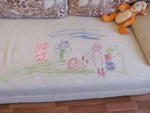 У нас сейчас такие стены по квартире, но мы не ругаем. Стены перекрасить не большая проблема, а ребенку самовыражение.