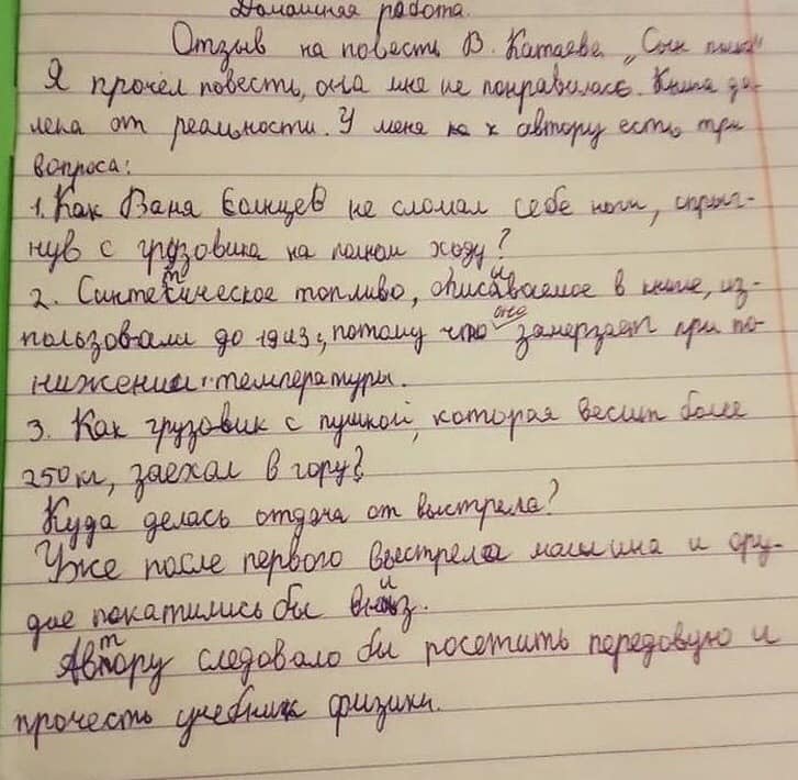 Отзыв школьника на повесть Катаева "Сын полка"