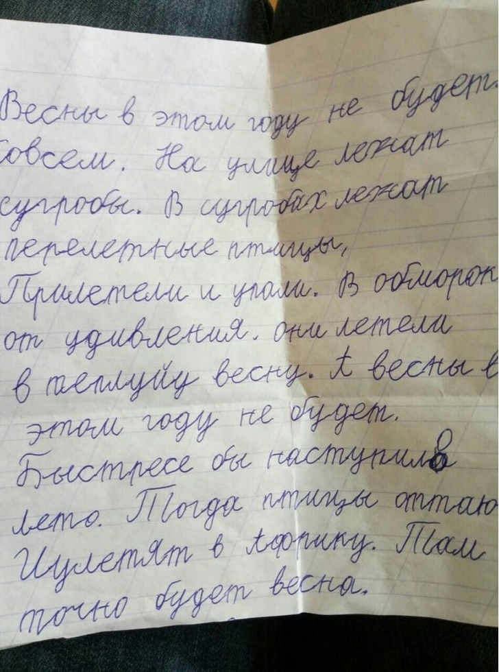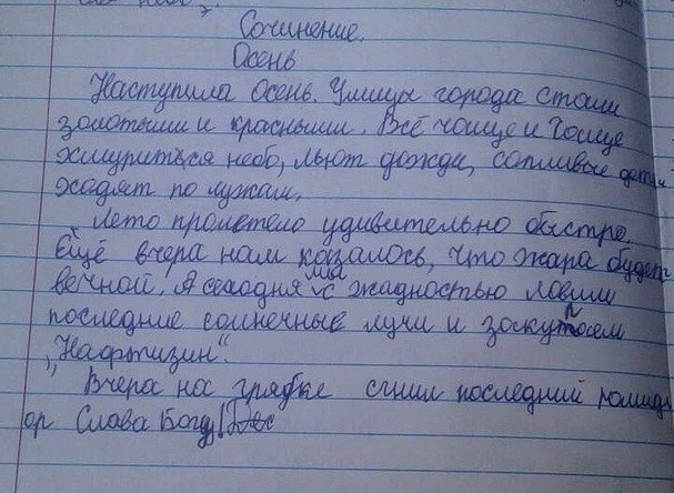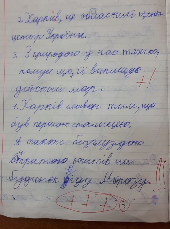Після читання цього шедевру 7-річної дитини я спитала, хто допомагав із домашкою.