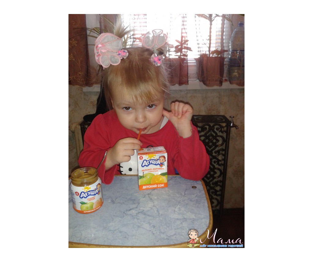 Благодарим Вас за отзыв о дегустации. Мы очень рады, что Ваш ребеночек любит соки и пюре от «Агуши». Спасибо Вам за доверие нашей торговой марке. «Агуша» - качество, проверенное мамами.