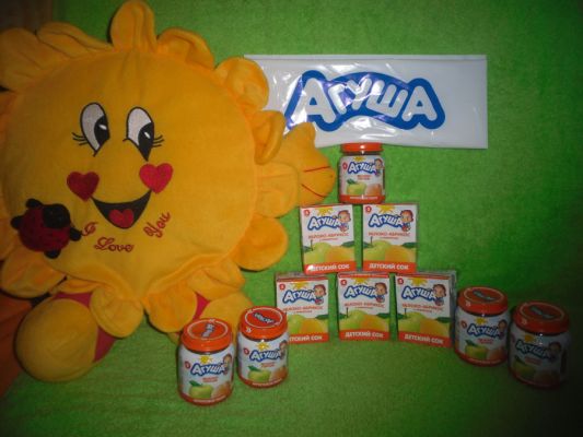 И мы вчера получили "Агушу", сколько там всего вкусного было, у дочки аж разбежались глазки)))Мы Агушу кушаем с 6 месяцев и до сегодня (нам 2,3) и дальше будем кушать.А особенно мы любим соки, они для нас всё!!!В упаковке мы нашли 5 соков и 5 пюрешек))) Спасибо Вам любимая Агуша, здорово когда доволен ребёнок, так как и родители тоже))))