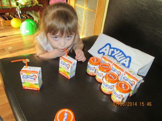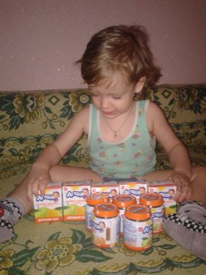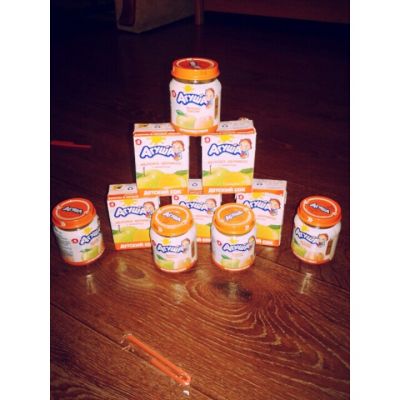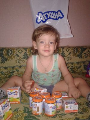 Вот и нам повезло! Агуша нам прислала тоже посылочку!!! Мы очень ее ждали, т.к. моя малышка очень любит пюре и творожки этой торговой марки. Для нее они выдались самыми вкусными!!! сначала мы поигрались с коробочками и баночками, а потом приступили к дегустации. баночка пюре и коробочка сока улетели за пять минут! Вот бы она супик так ела!!!! Все остались довольны))) Мы доверяем Агуше и без опасения даем ее своей доченьке). Вкусно и полезно) Кефирчик мы еще не пробовали, но думаю все еще впереди.