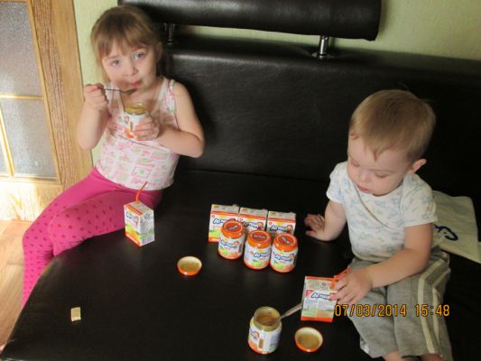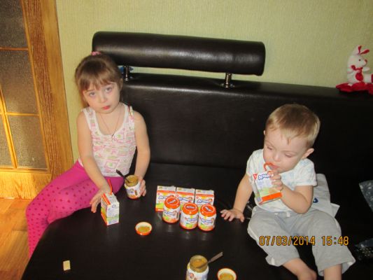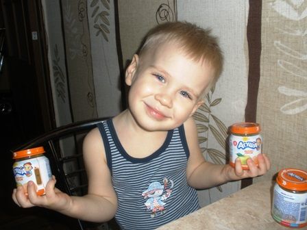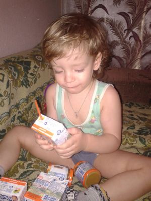 Ой и мы сегодня получили смс с почты и сын мой резко засобирался на прогулку,он уже знает где получать свою любимую послыку,не удержался и прям на улице выпил упаковочку сока,погода распологала к длительной прогулке,а по приходу домой сразу же дело дошло до пюре. Пюре как и сок очень вкусные,