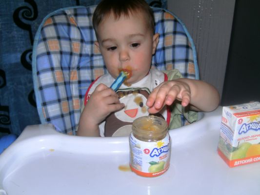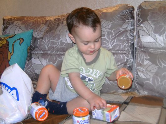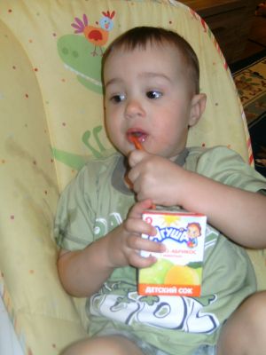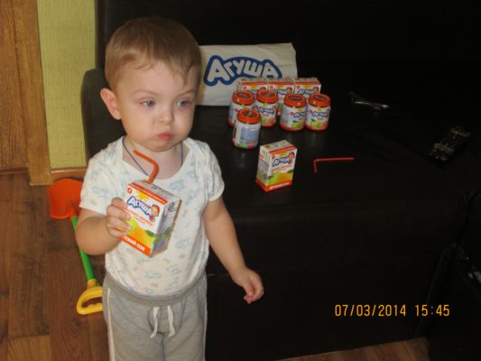 Мы тоже хотим поучаствовать))) Нам скоро год, пюрешки и творожок сынулька очень любит, а сок только "Агушу " пьет, особенно ему нравится яблочный и только через трубочку)))