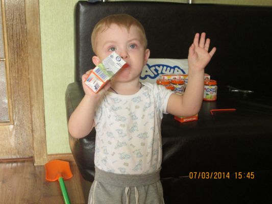 Ребенок очень доволен. А доволен ребенок-довольна и мама. Ведь это так радостно,когда ребенок здоровый и с большим удовольствием пьет и кушает вкуснятину.