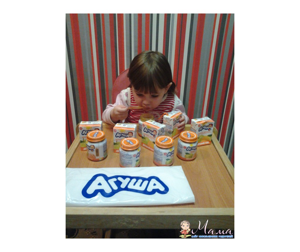 раз мы получили свой сладкий подарочек от ТМ "Агуша". Спасибо большое за "витамины в баночке". В данный период, когда организм ребёнка особенно нуждается в витаминах, пюре и соки Агуша очень актуальный продукт в рационе любимых малышей. Вкусные полезные соки и пюре Агуша помогают каждой маме поддерживать иммунитет чада. Еще раз огромное спасибо.
