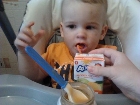 В дорогу, в гости и на долгие прогулки всегда берем с собой сок и фруктовое пюре, удобно, вкусно и спокойно за то что ребенок останется сытым и довольным.