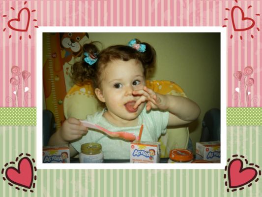 Кроме соков дочка с удовольствием кушает пюрешки и творожки.