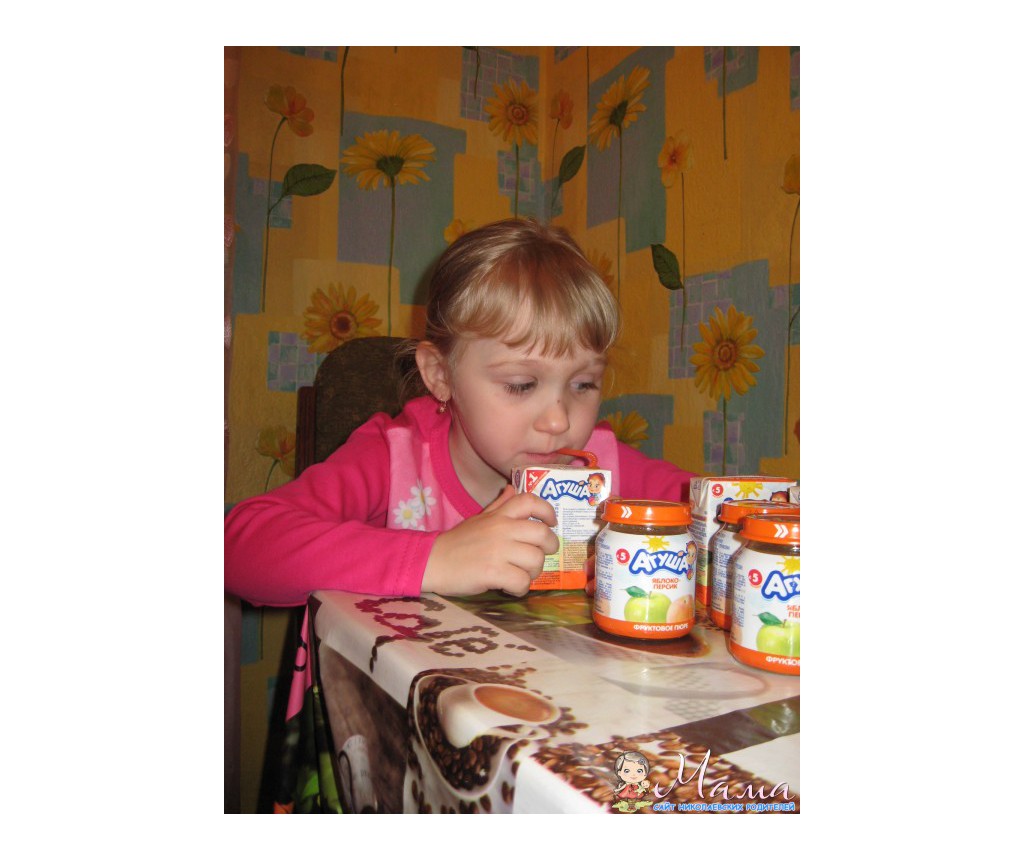 Вашу продукцию очень любим и кушаем каждый день. А я, в свою очередь, спокойна за здоровье своего ребёнка, т.к. Агуша производится только из натуральных компонентов без посторонних примесей.
