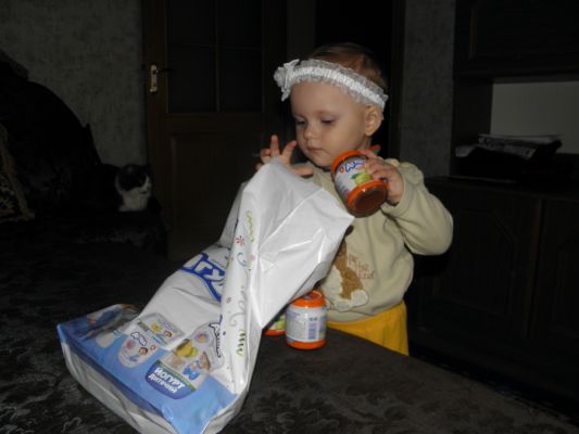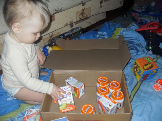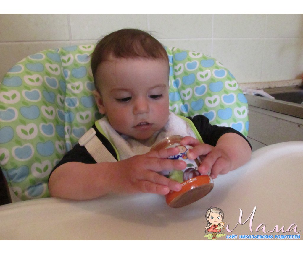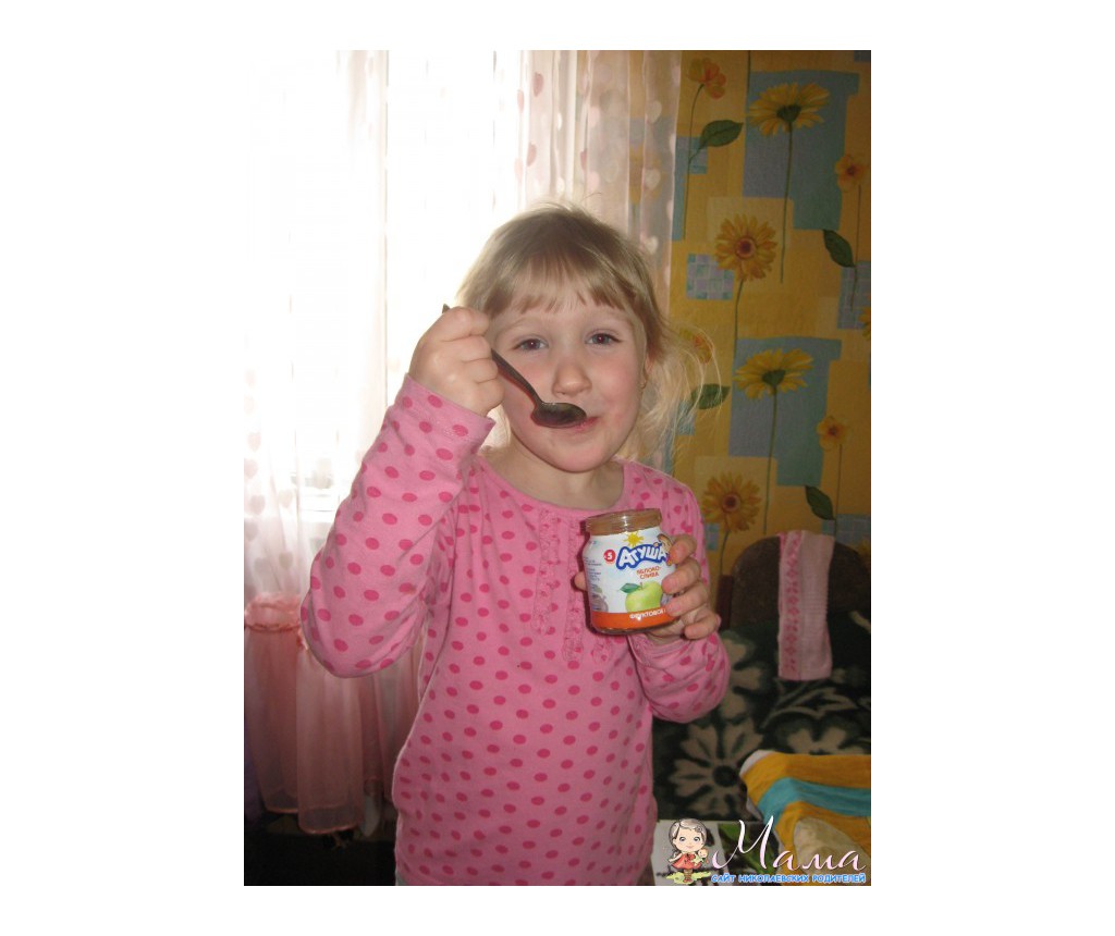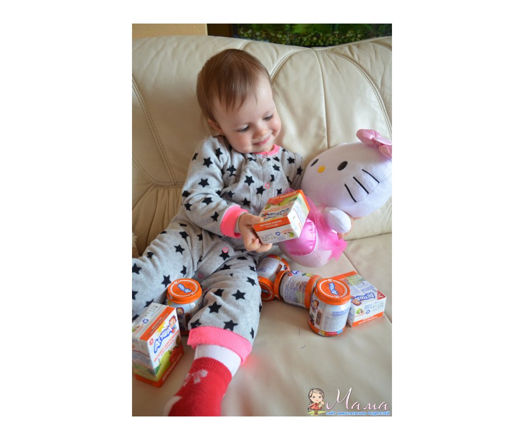Я уже и забыла, когда последний раз смотрела на баночки других производителей в магазине, наша дочь обожает разбирать пакеты из магазинов, выискивая там любимые баночки с пюрешками и коробочки с соками) В этот раз мы получили 5 пюрешек "Яблоко-слива", очень нравится дочке, часто покупаем такое, и 5 соков "Яблоко-шиповник", честно говоря, в первые такой вижу, но манюне очень понравился, она любитель соков без мякоти и чтобы кисленький был. Слопали все очень быстро и с удовольствием, Маша сама берет ложечку и кушает, слегка пошатываясь из стороны в сторону "мммммм" - это значит вкуууусно