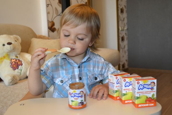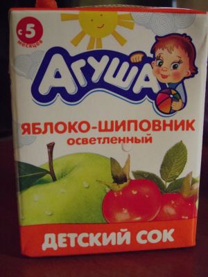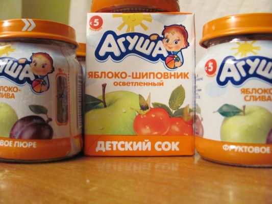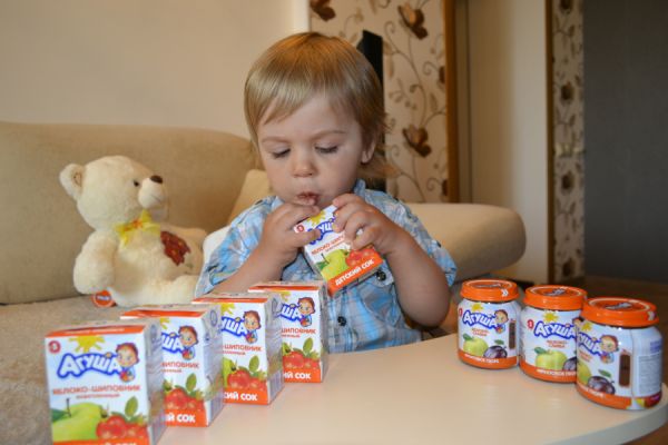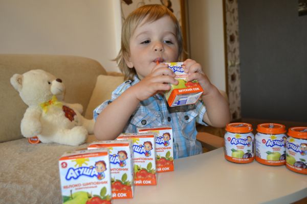 Взять, к примеру, сок "Яблоко-шиповник" - в состав входят только соки этих двух компонентов и больше ничего! А в состав йогурта "Агуша", например, входят еще дополнительные полезные для малыша компоненты - пребиотик и витаминный комплекс!