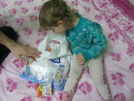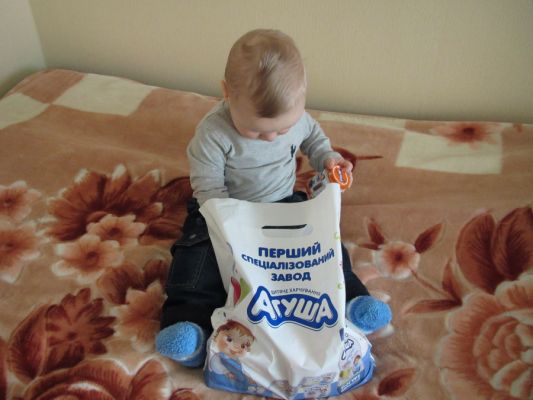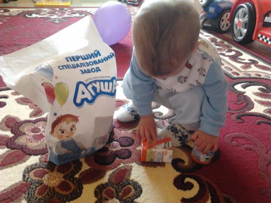 Ми також отримали чарівну коробочку від "Агуши". Малий вже вивчив, що, якщо я кличу: "Михась, йди, будемо відкривати посилку!", то це зараз буде смачненьке)))