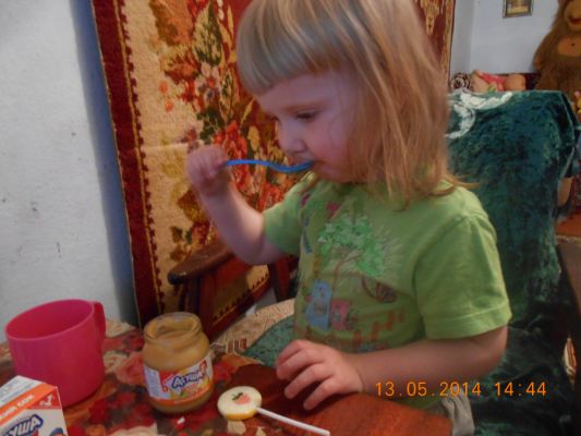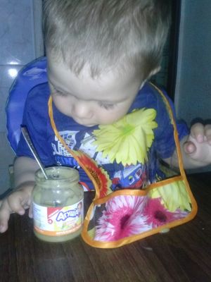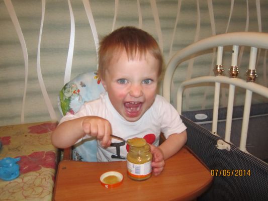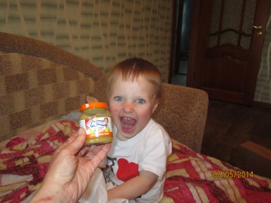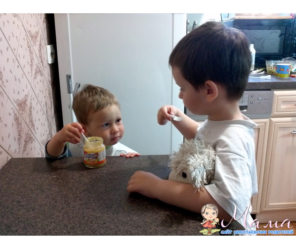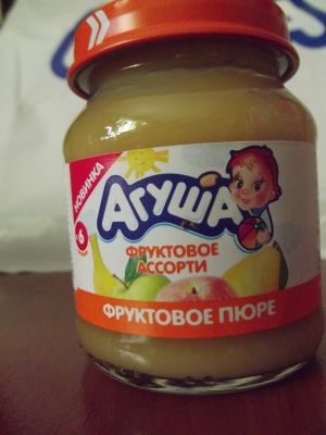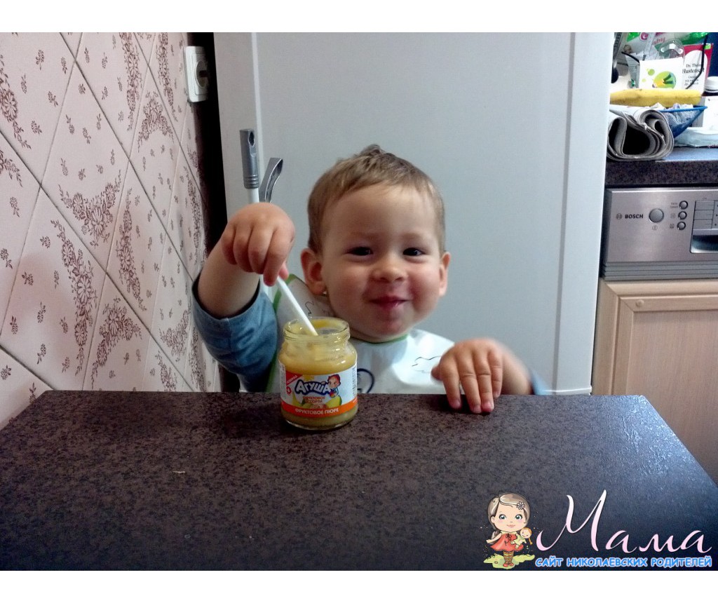 Ну а пюре с интересным названием "Фруктовое ассорти" чудесно пошло на полдник, пока меньший начал побовать, тут старший сын решил продегустировать, что же там такое вкусное))