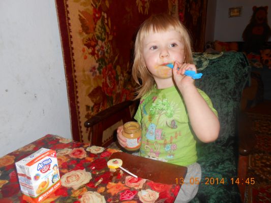 И чтоб ни капельки не пропало, Агуша- пальчики оближешь)))
